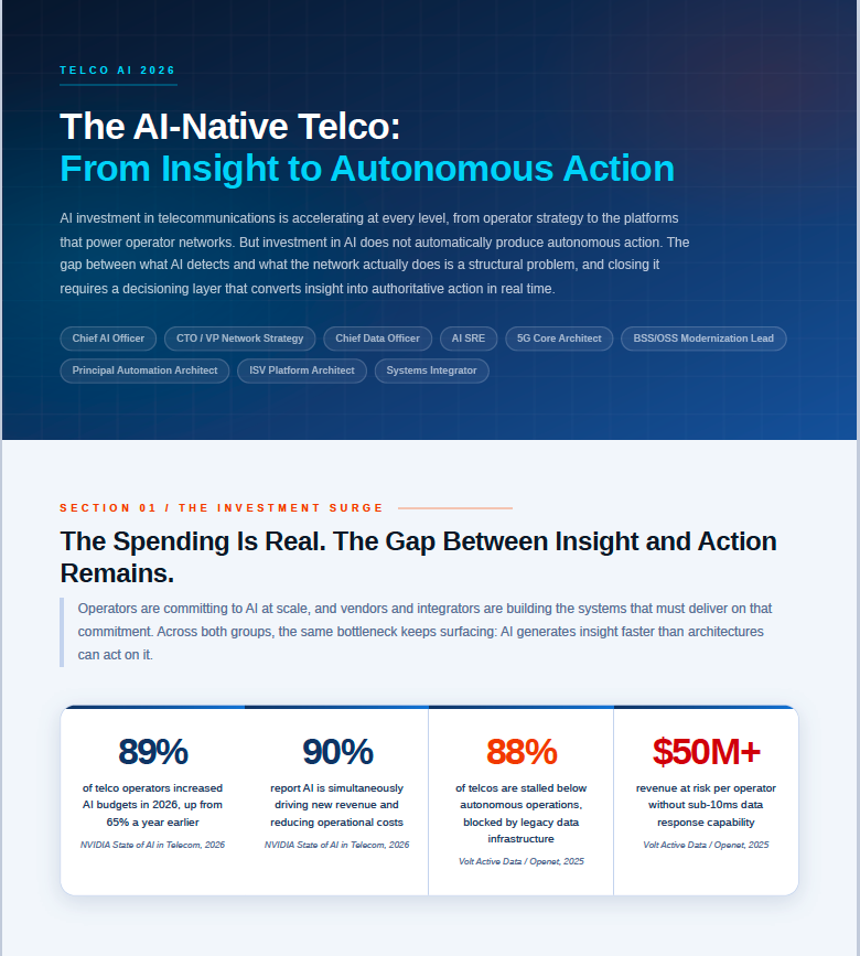 AI-native telco autonomous operations are accelerating as a strategic priority, but investment alone does not produce autonomous action. Across operators and the vendors and integrators building the platforms that power them, the same structural bottleneck keeps surfacing: AI generates insight faster than architectures can act on it.