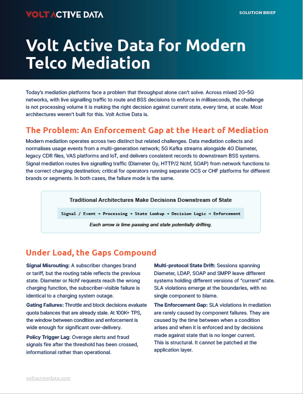 Download the solution brief to see how Volt Active Data enforces real-time decisions across multi-protocol, multi-generation operator environments.