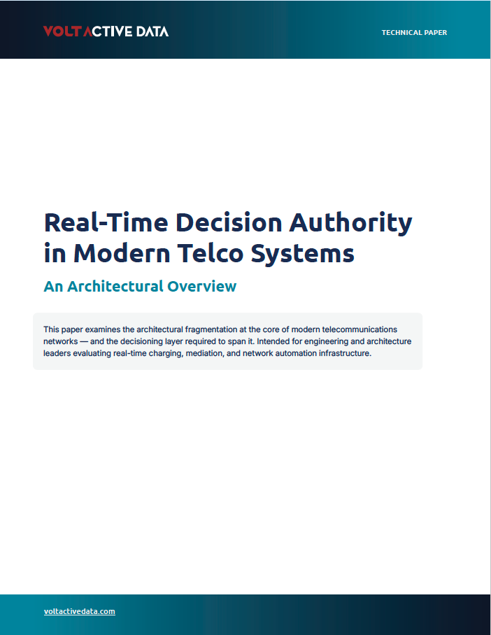 Closing the telco decisioning architecture fragmentation gap does not require replacing existing infrastructure. What is missing is an explicit architectural layer that owns decision authority, where state management, decision logic, and atomic recording of outcomes happen together, under a single consistency model, fast enough for the results to matter. This paper examines that layer, how it works across PCC, BSS charging, 5G mediation, and network automation, and what telco-grade non-functional requirements actually demand of the underlying technology.